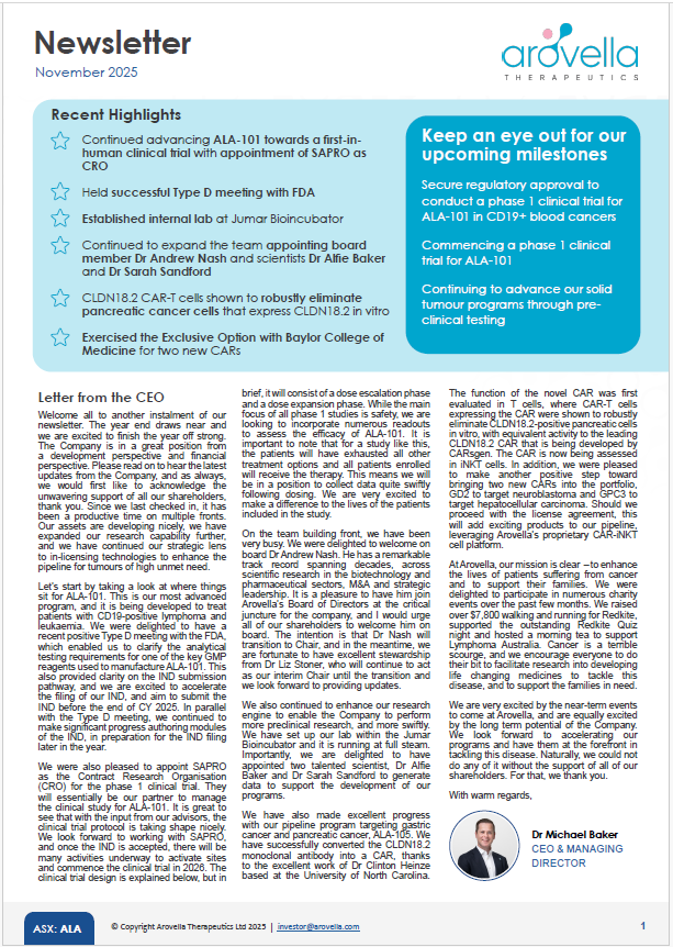 Arovella Newsletter November 2025